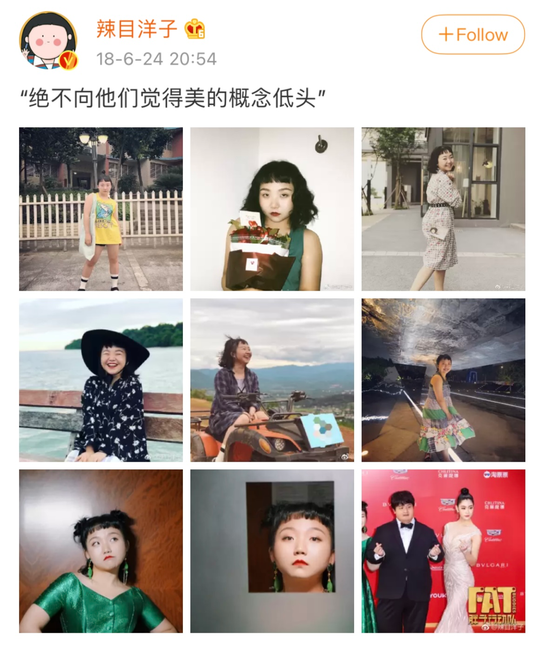然后又有人发现,喊着不低头的辣目洋子,从网红走到演员的这几年,体重已经从140+下降到了120+。