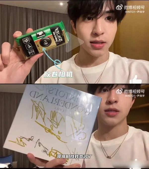 但是大家又扒出,尹浩宇其实送的是三件礼物,除了相机和签名专辑,还有个预防高温的药物。