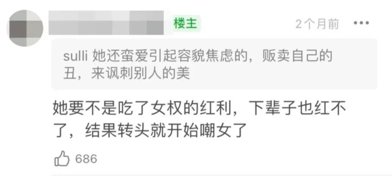 “刚吃完女性红利,就转头迎合男性视角,完全忘记自己曾被男人骂作丑女。”