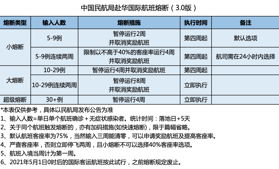此外,该熔断政策仅适用于海外飞内地航线,港澳台航线均不包含在内,无论是港澳台飞内地航线还是港澳台飞海外航线。