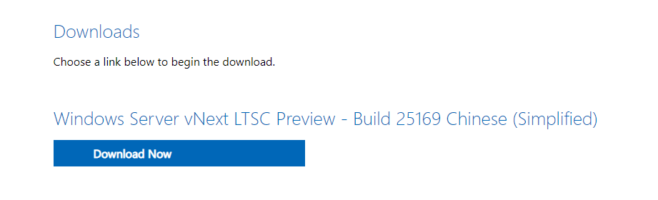 选择 Windows Server VNext Preview ISO - Build 25169