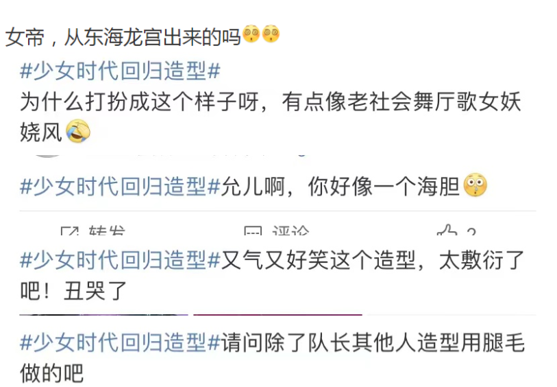 看到这些奇葩造型,网友们纷纷表示被丑哭,就连粉丝都不能忍,开启花样吐槽模式,直言成员们仿佛来自龙宫,有些致敬《山海经》的感觉,更把团内颜值担当林允儿的新造型定义为海胆头。