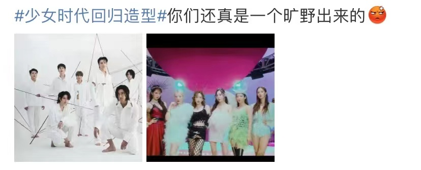 其实,这也并非韩娱造型首次被吐槽,之前Super Junior的回归造型就被质疑太过敷衍,全员白色系套装,再加上潦草的发型和焦灼的眼神,给人一种野外求生的视觉感。网友们还特意将两个团的回归照进行对比,果然出自同一家,只是一个来自地面,另一出自海中。