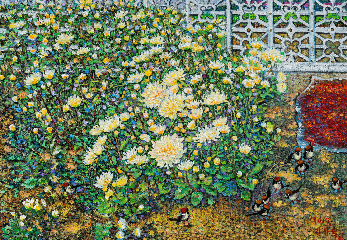 无论何种题材,我们透过细腻的笔触都能够想象出似曾相识却又有些模糊的场景。朝鲜艺术家以叙事性的视觉语言传达出崭新的艺术观念和语言,把原本平凡或清俗的日常,转化为浪漫的理想主义情怀。