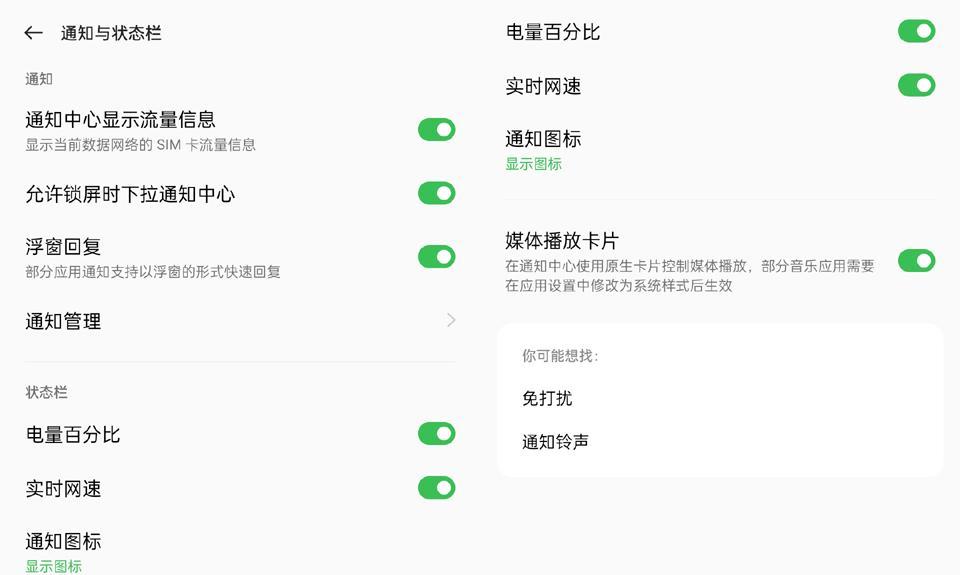 通知与状态栏选项中,我们可以针对通知管理,顶部电量百分比,实时网速,通知图标进行设置。同时可以单独针对某个APP的通知点进去设置详细的选项。