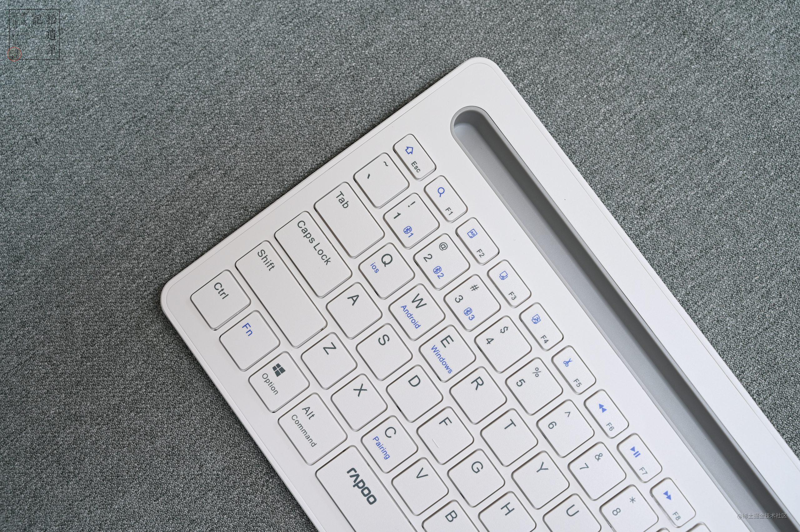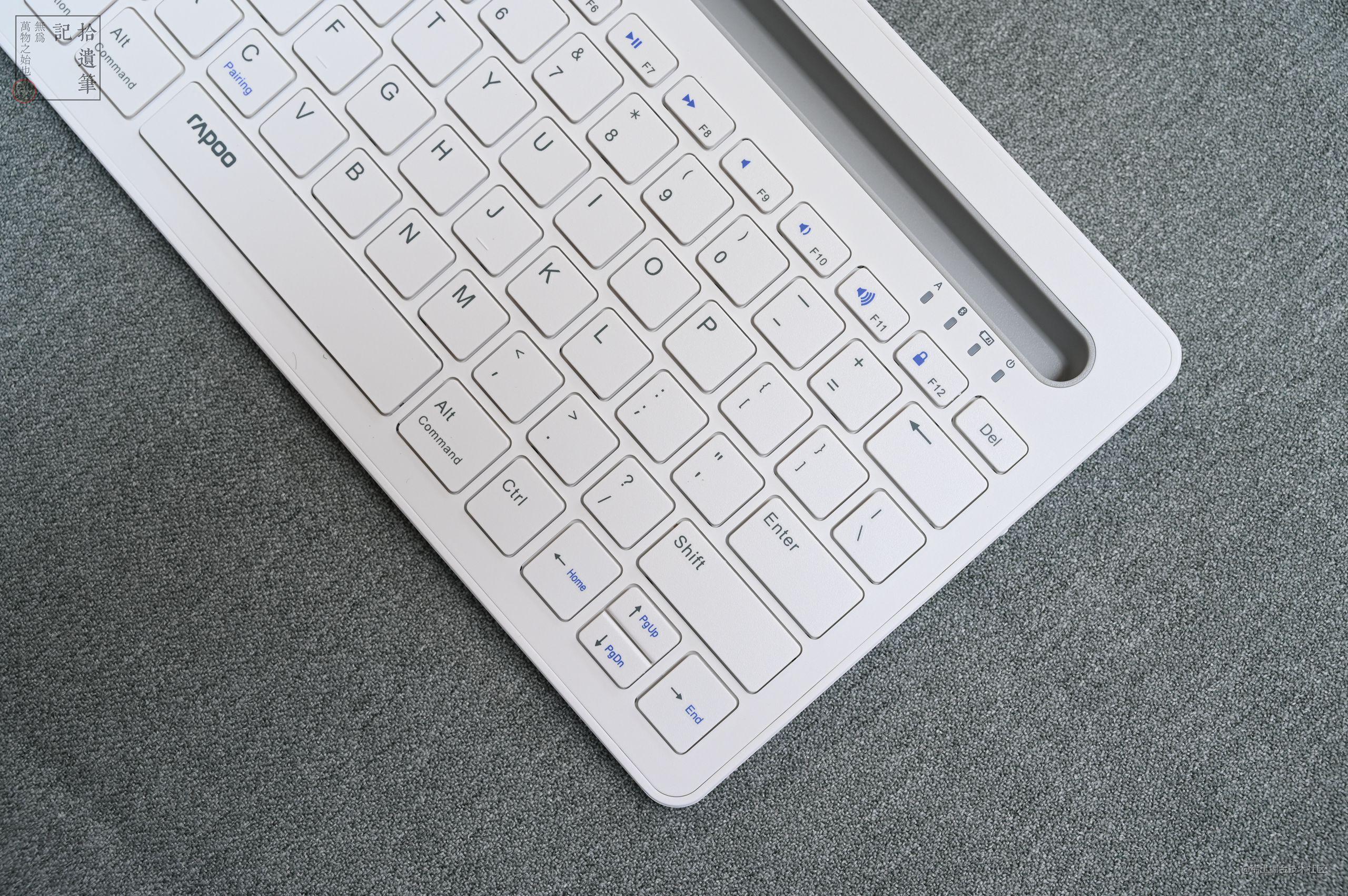 雷柏XK100的设计十分简约,有黑白等配色可以选择,我的这个就是白色款,看起来很干净。这是一款78键的键盘,平时打字会很方便,而且按键的布局很合理,有着出色的手感。整体看来,雷柏XK100做得特别小巧,这样外出携带会更方便一些。