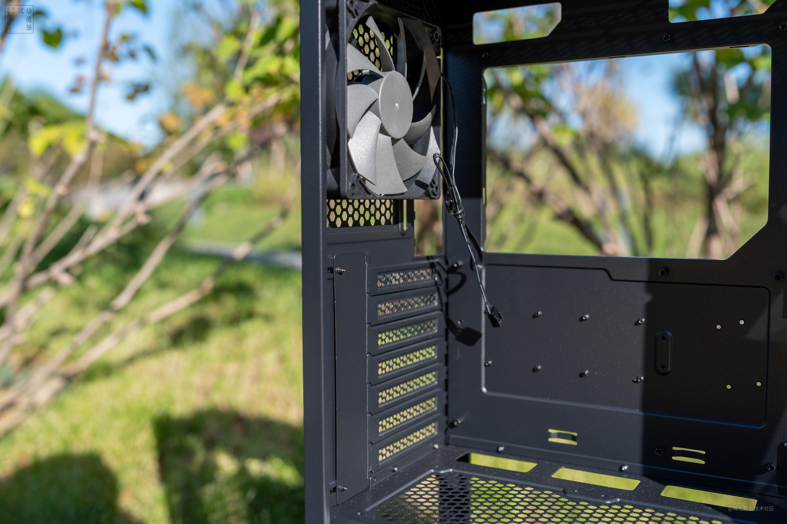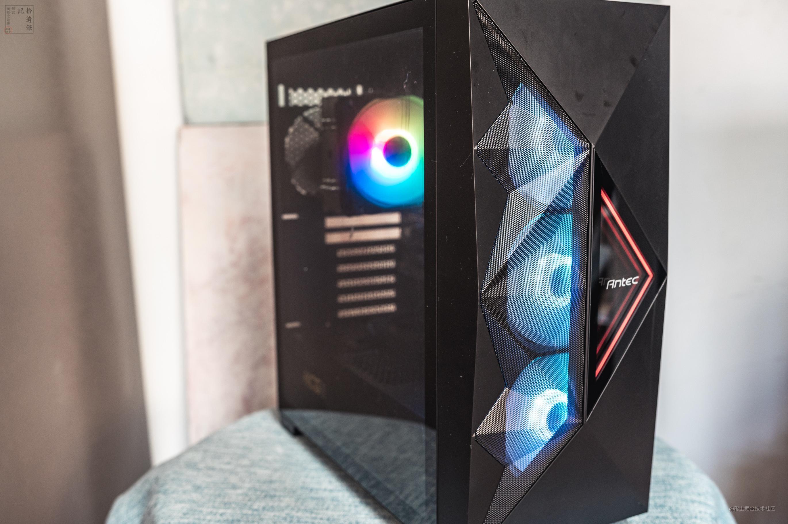 实际工作中,我通常会使用一台DIY主机来完成主要的工作,配上这款支持连接三台设备的键盘,确实是提升了我日常办公的效率,我现在用的是一款安钛克的DF800 Flux机箱,它有一种特殊的设计,可以大大提升显卡的散热环境DF800 Flux星曜者机箱电源仓上面加上了两个风扇位,可以用来安装两把风扇,为显卡提供垂直的散热风道,这个位置可以配备安钛克随机提供的12cm反叶风扇,从而通过机箱底部获取足够的进风量。