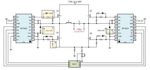 ID7S625具有独立的高低侧输出通道,其浮地通道能工作在60OV的高压下,可用于驱动一个N沟道功率MOSFE或IGBT半桥拓扑结构,非常适合硬开关逆变器驱动器、DCDC 变换器。低压侧和高压侧控制和驱动器均为自供电,无需外部辅助电源。