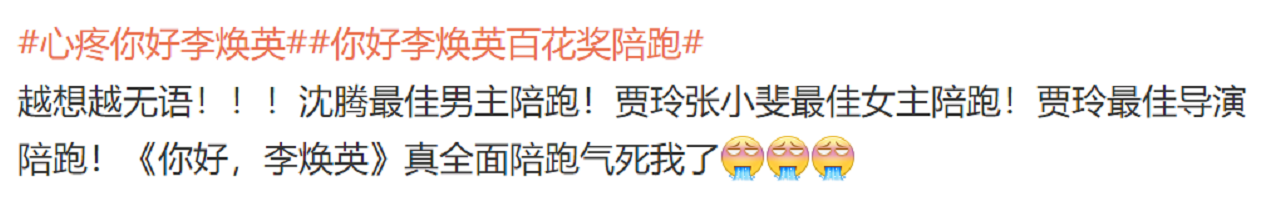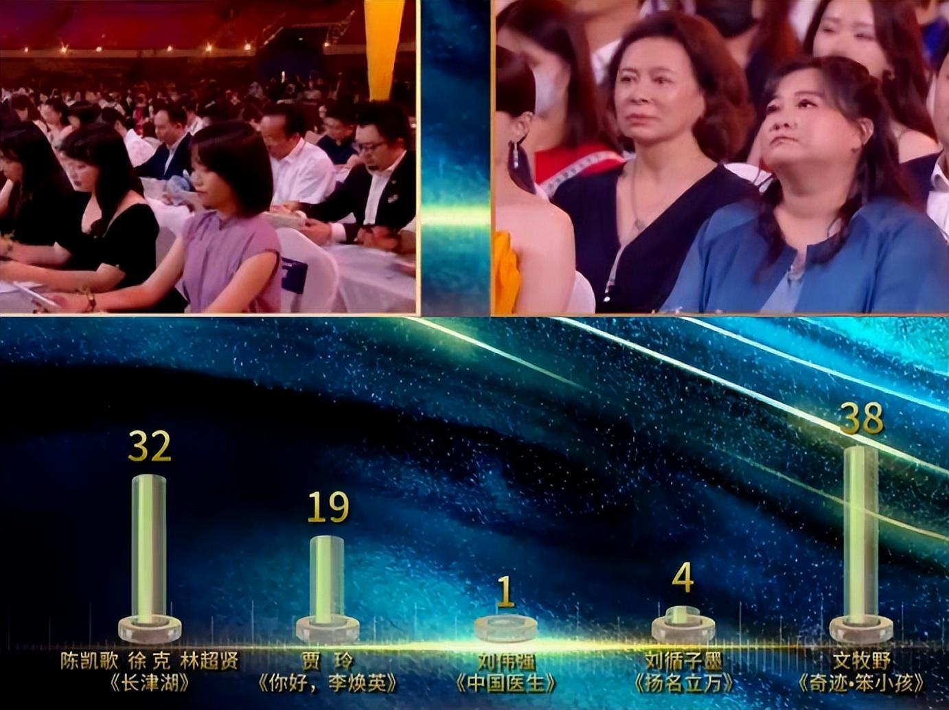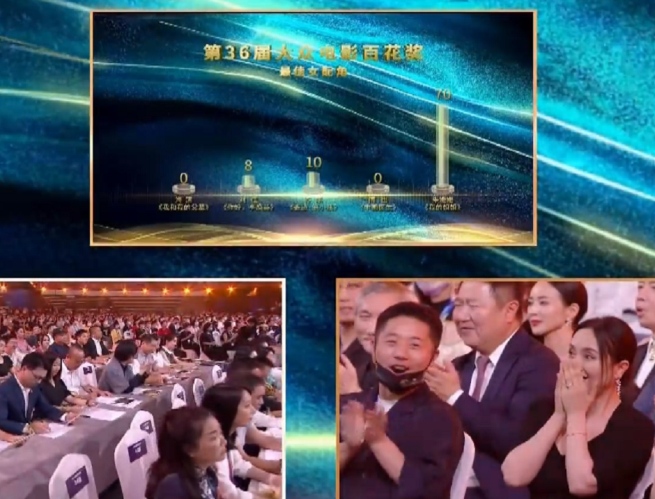 其实最适合贾玲的奖项还是金鸡奖新人导演,但《李焕英》如此高票房,却在大众投票奖输了,只有一个优秀影片奖,还是很遗憾啦,后面贾玲的表情也一直很失落。