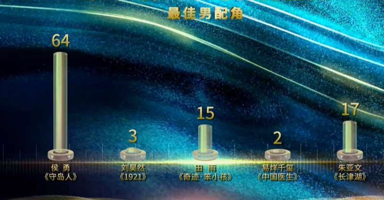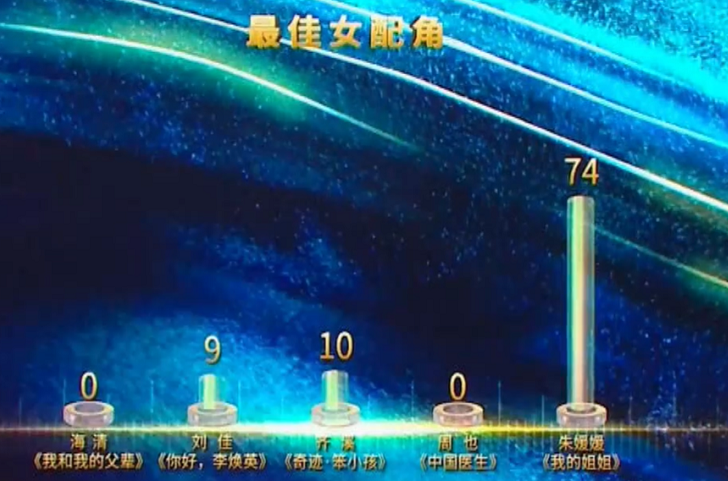 看了一下在《长津湖》中戏份不少且表现也还不错的朱亚文只有17票,难怪他会想苦笑了,再看隔壁获得最佳女配角的朱媛媛,直接拿到了74票,整个人直接惊喜得合不拢嘴,上台领奖的时候也不忘提一句票数。