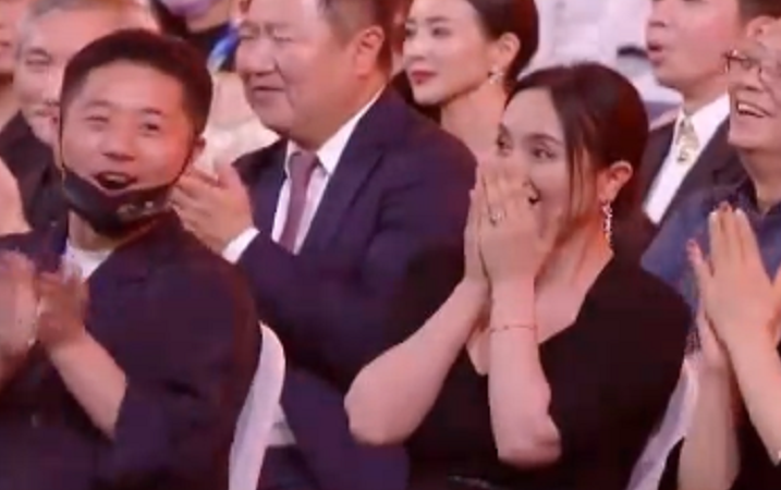 最佳导演颁奖过程中,贾玲一开始抓头发掩饰,后续直接瘪嘴,仰着头看其他人上台领奖的样子也显出几分可怜。