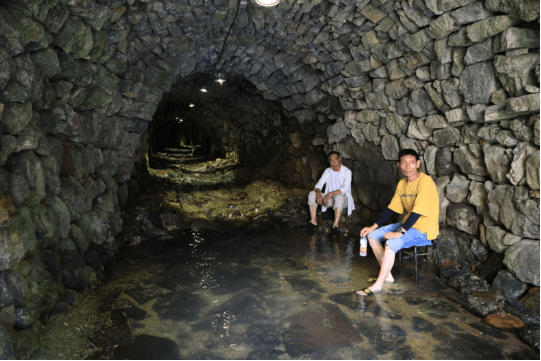 沿溪留有5个取用水口,在溪隧道里一年四季如春,尤其是夏季,这里成了孩子和游客享受大自然恩赐的西北坎儿井式极佳去处。