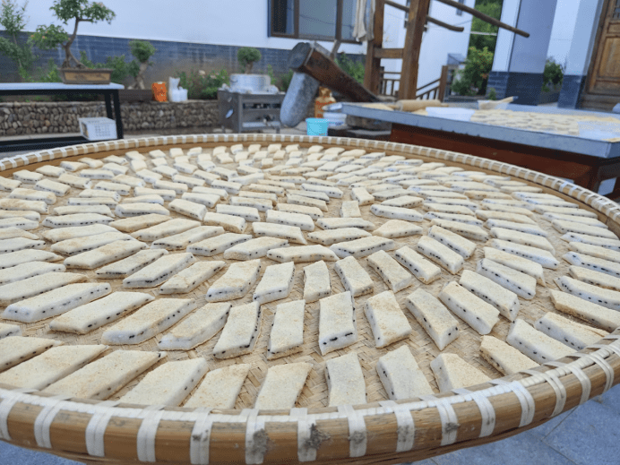 凌晨四点,村长还亲自带我们登上山巅,观云海日出,感受在山中当神仙的感受。房东老马夫妇一大早就赶忙蒸糯米,打麻糍,那内芯夹有黑芝麻,外沾香豆沫的浦江麻糍非常香糯可口。上午村长又带我们登高观赏全村布局,走坪上古道,体验在这新生的历史文化古村落的魅力。