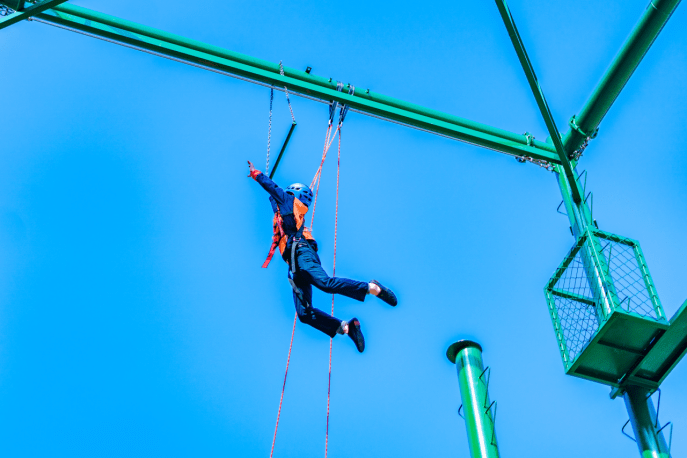 野趣吧探索营地有8个不同活动区域,开设飞拉达、高空索桥、攀岩、速降、皮划艇、射箭、真人CS、非泥不可、卡丁车等20个项目,吸引了众多游客参与。
