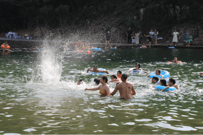 盘山村月牙湖风景区位于北纬30度线附近,四周群山环绕,是负氧离子富集的亚原始次森林带。景区集旅游、民宿、餐饮等功能于一体。景区还有1600平方米的天然泳池,游客可在此尽享水中嬉戏的美好时光。