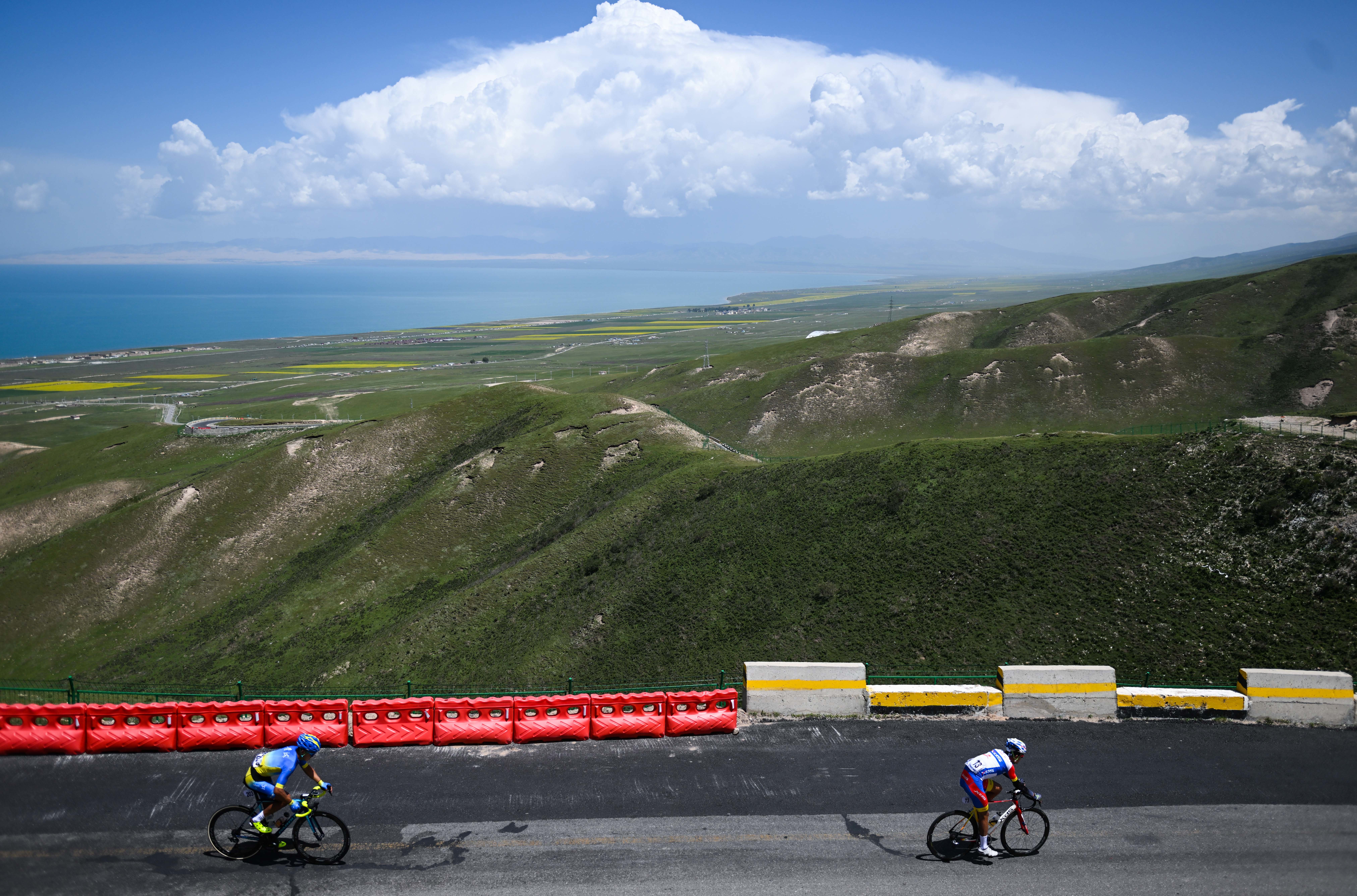 该赛段全程155公里,从共和至青海湖景区,途中设有两个冲刺点和两个爬坡点。第一冲刺点过后,主集团一度陷入沉闷,直到第70公里突围大团才出现。