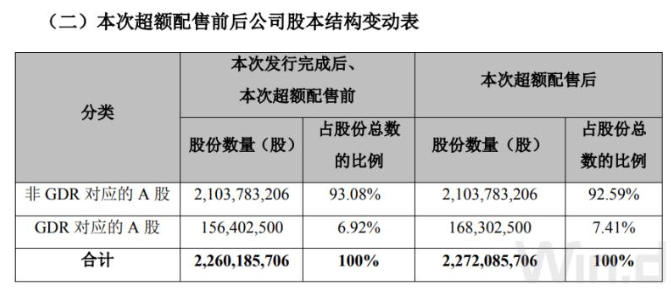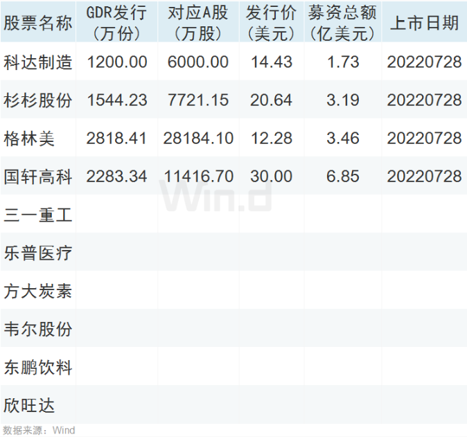 最终本次GDR募资7亿美元,对应16830.25万股新增A股,上市日期为2022年7月29日。