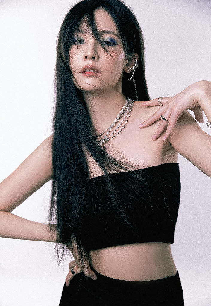 赵粤拍摄复古造型胶片风写真 分体式黑裙显超辣身材