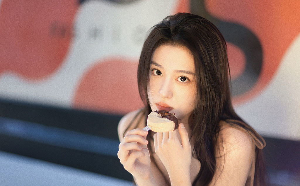 王楚然深咖色吊带裙拍夏日写真 长发披肩气质清纯皮肤吹弹可破