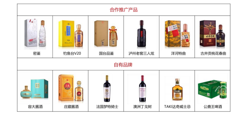 酒仙网的专销产品主要分为自有品牌和合作推广产品。其中,自有品牌,是酒仙网享有商标权的,包括“容大酱酒”、“庄藏”等;而以国台、泸州老窖三人炫、密鉴为代表的合作推广产品,则是属于公司的独家代理。