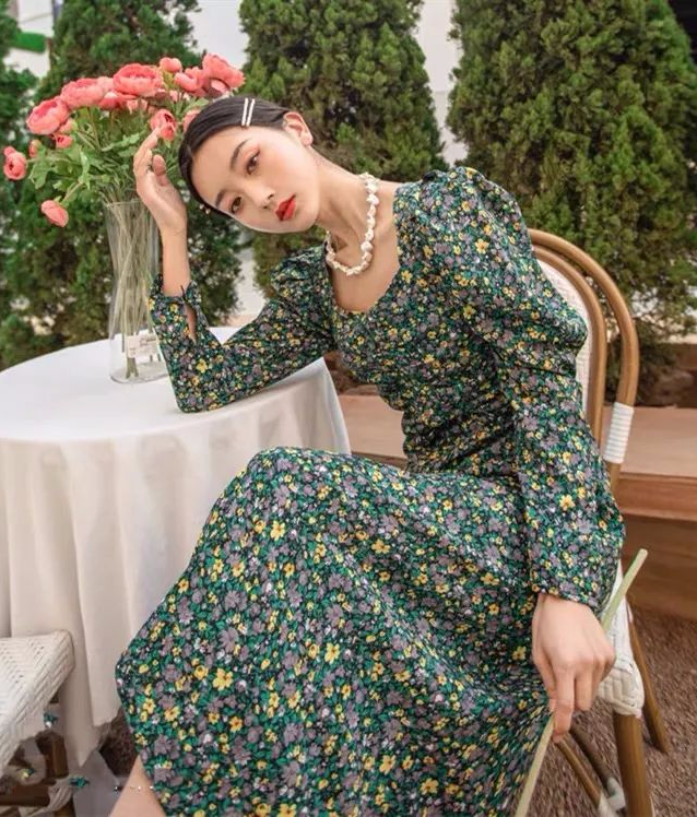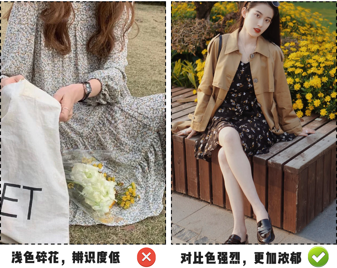 从她们的穿搭中我发现 港风碎花的特点就是花色对比特别强烈, 黑底白花辨识度超高! 想要穿出正宗的港风, 碎花绝对是不容忽视的存在。