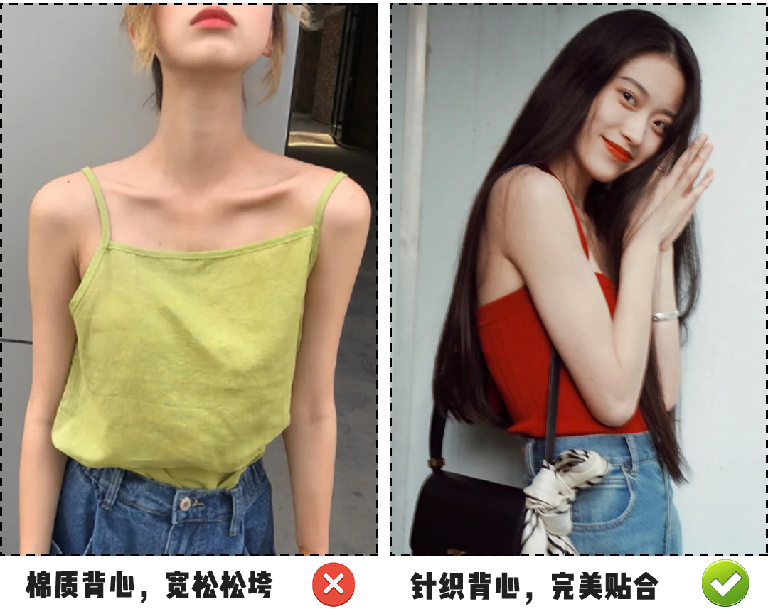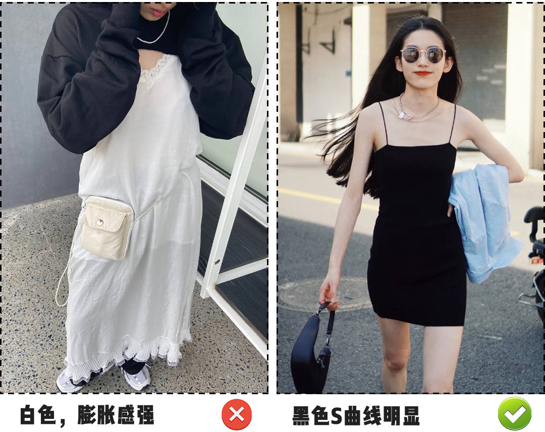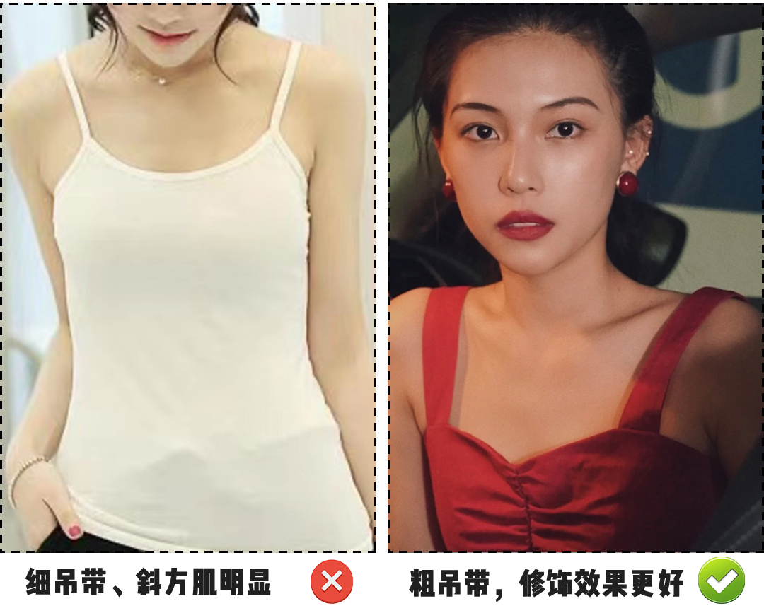 跟我一样肩部线条不够完美或者 有斜方肌的姐妹们 可以选择宽一点的吊带, 修饰效果更好! 港风风情丝毫不会减弱