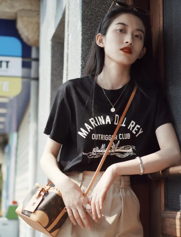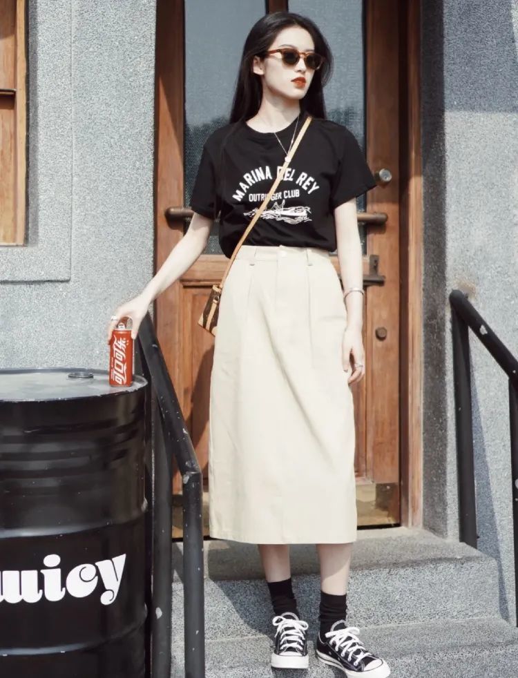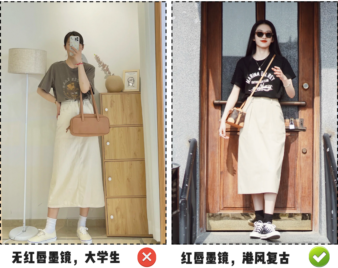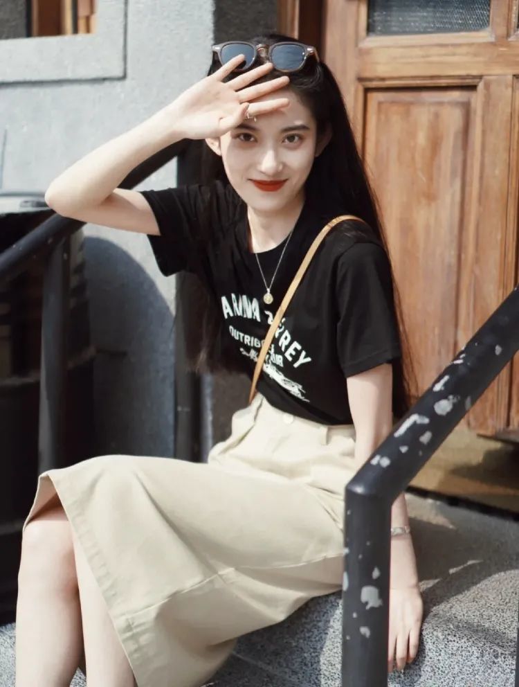 在校或职场新人, 短袖半裙你们都有吧? 日常很难穿出彩, 但只要搭配红唇和墨镜就可以轻松出圈