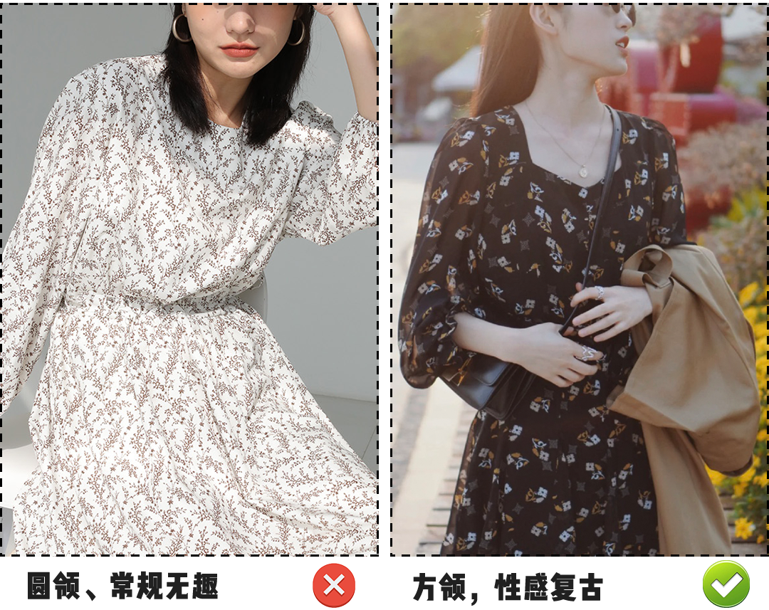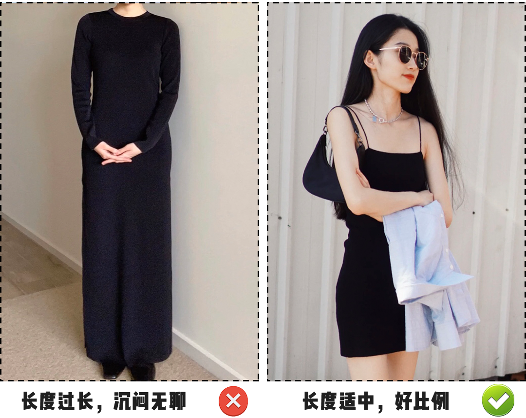 长度如果过长至脚踝,加上圆领领口就是社死现场,容易压身高不说;夏天这样穿总感受过于沉闷,喘不过气来.....姐妹们对比一下!