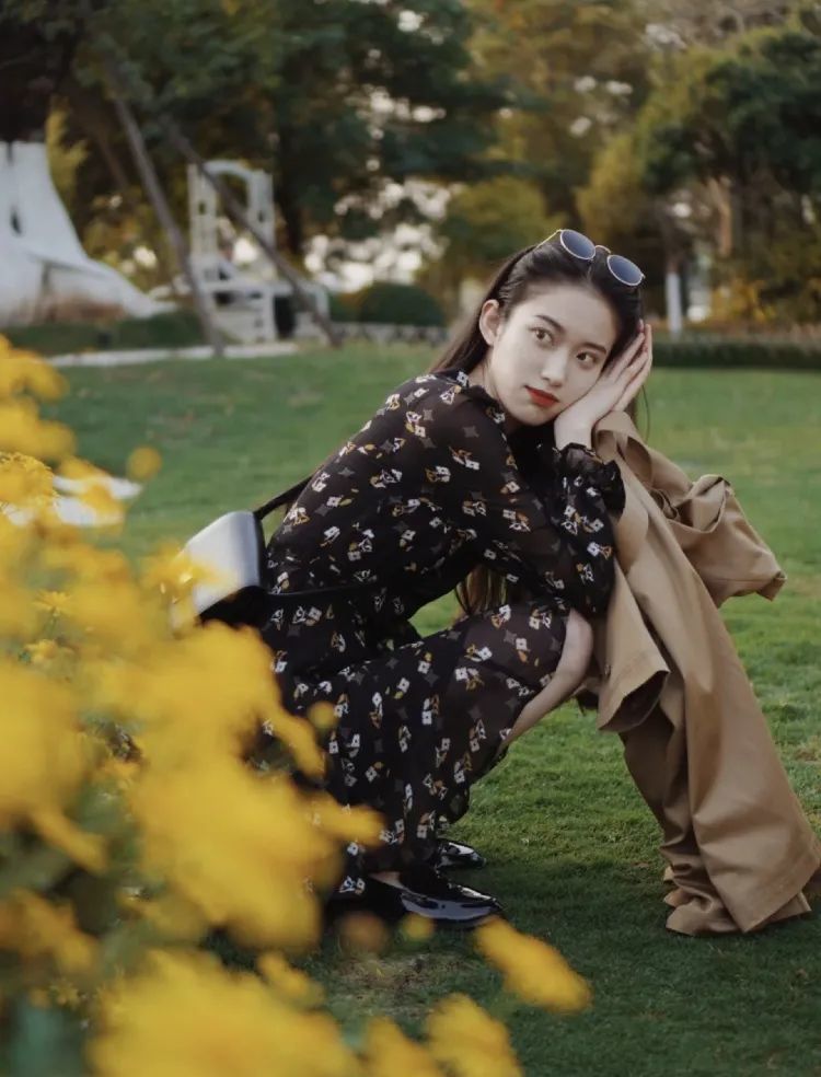 博主Moe就借鉴了这思路 黑底搭配黄白亮色系花朵, 即使在花丛中也能一眼被看到 超有港风的浓郁气息!