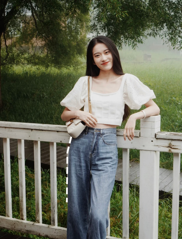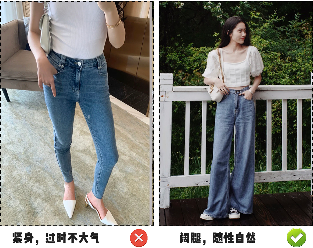 我买的时候都会对照港风牛仔裤的腿围 50-56cm左右,不会太宽也不会太窄, 超过这个范围矮个子就很容易被压身高了