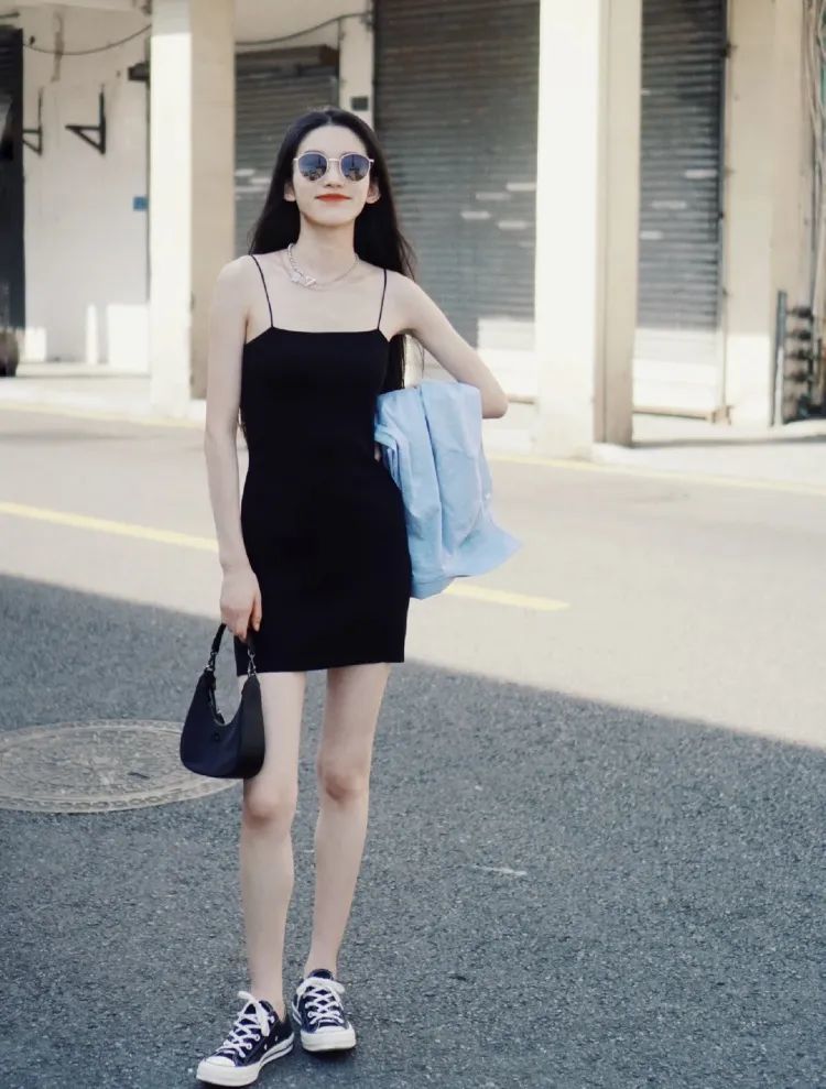无论是细吊带还是挂脖款都是完美单品;港风吊带裙基本都是纵向裁剪,简洁利落,完美贴合身材。