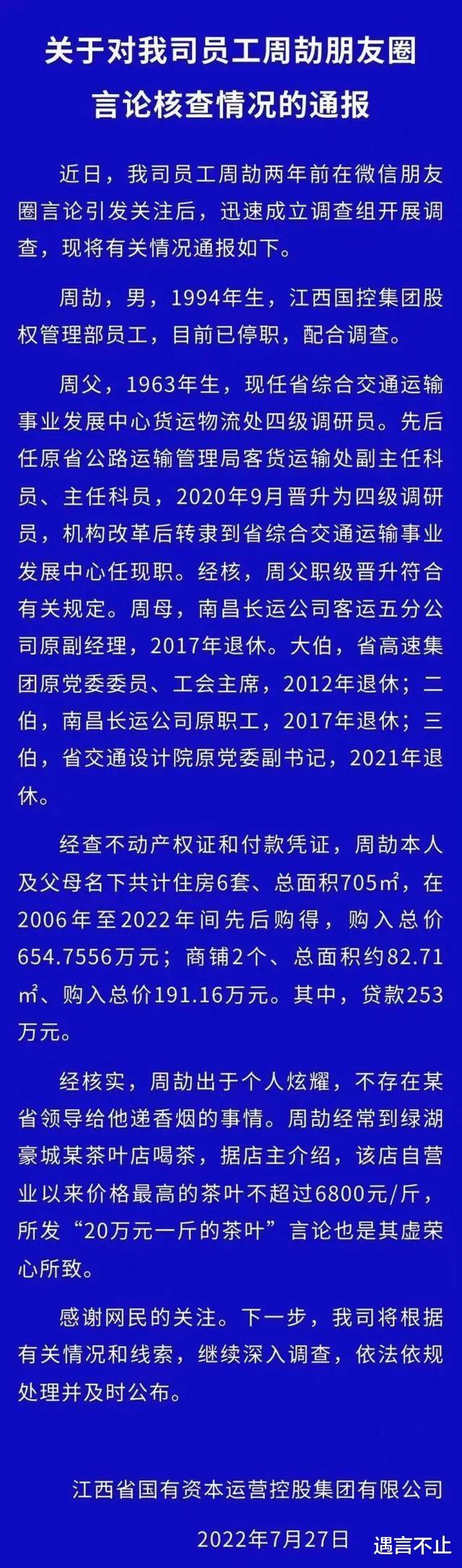 对于周家的父亲、大伯第一步是怎么上位的,遇言姐不太清楚(根据江西国控的官方回复,周劼父母的晋升符合规定,但是江西纪委的回复是还在调查中),也不会妄加揣测。