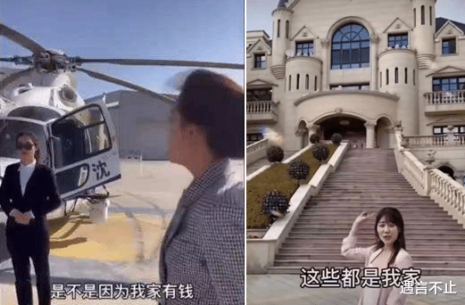 ▲前两天刚刚曝光的网红王澄澄,在抖音上发出自家城堡般的豪宅和带“沈”字样的警用直升机,还有很多豪车