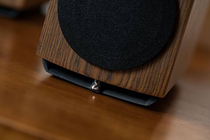 黑烬EL3三围只有21*10.8*20.5厘米,单只重2.7kg。尽管这么小巧,箱体反而追求更苛刻的工艺。黑烬EL3外面是看不到一个螺丝孔的,上下还做了一定的弧度,搭配地下一整块金属底座。质感和层次就出来了,虽然是实木,但兼具了复古和潮流的气质。