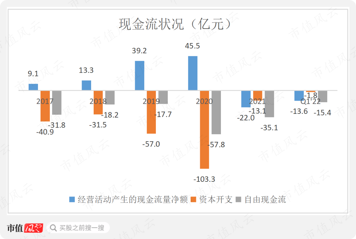 2021年和2022年一季度,处于下行猪周期时,公司经营活动产生的现金流量直接为负,虽然公司大幅削减资本支出,但自由现金流仍然大幅为负。