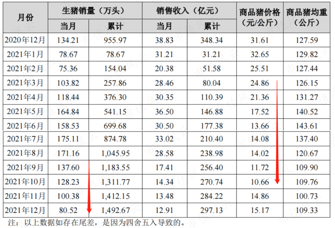 但是公司的产能已经打上去了,猪价就算下跌该出栏的猪也得卖啊,于是公司各月生猪销量延续增长,2021年7、8月份的高峰时期每月生猪销量已高达170万头左右。
