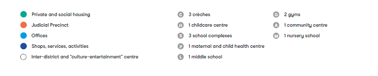 Clichy-Batignolles预计提供 12,700 个工作岗位、3,400 套住房、150万平方英尺的办公空间、410,000平方英尺的公共设施(包括学校)和334,000 平方英尺的商店和服务场所。场地内的住宅单元包括50%的社会住房,30%的市价私人住宅以及20%的豪华住宅,其中针对学生和青年工人以及带有幼儿的家庭,都配备了相适应的居住空间,以实现其社会阶层和功能混合的目标。