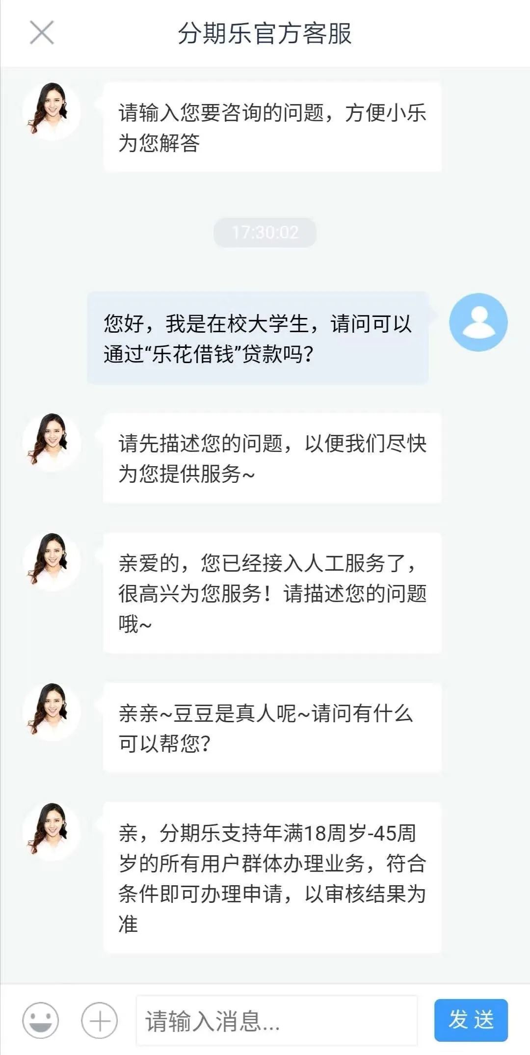 文中提道:新华社记者以大学生的身份致电“分期乐”咨询借款,客服告知,只要年满18周岁就可以申请借款,与是不是学生无关。平台提供技术和初审服务,最终放款是合作的金融机构。