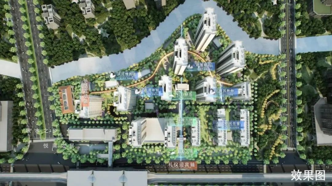 悦澜天地为城市TOD智慧生态住区,占地面积42155.9 平,容积率2.5,由9幢高层和3幢洋房组成。