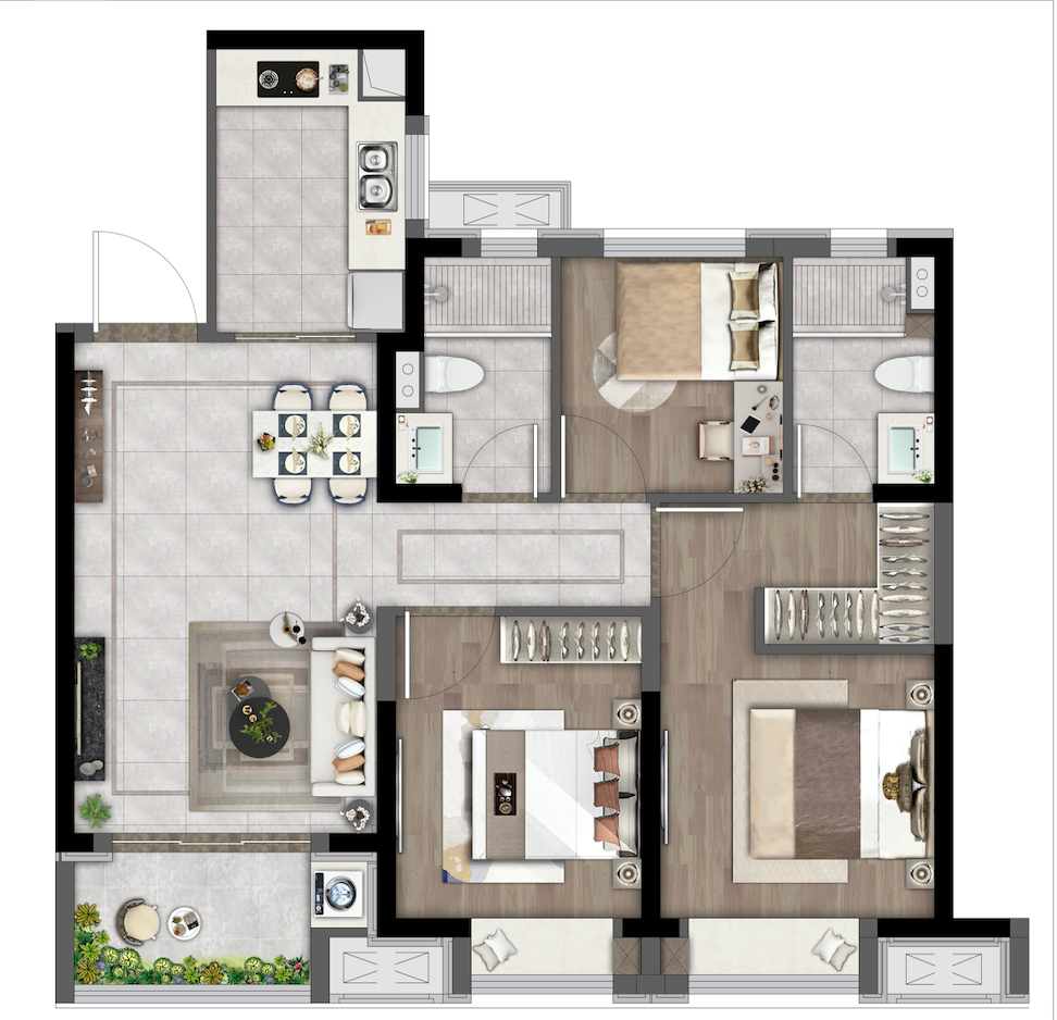 以建面约96㎡户型为例,全通透阳光3房,让居者在轩朗生活空间中,享受更多阳光照拂;动静分离布局,满足成长型家庭的空间需求;更解锁高品质生活场景,赋予家人美好与舒适,成就美好生活本真。