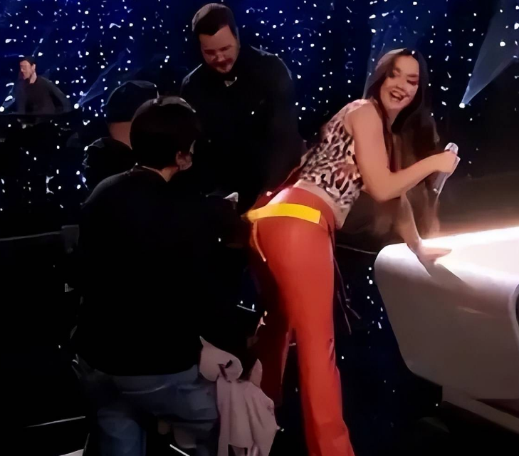 水果姐也是一样,当她在舞台上穿着紧身皮裤热舞时,裤子直接被她崩开了线,但因为没有时间临时换装,水果姐只好让工作人员们带着胶布上台,现场把崩开的部位用胶带贴起来,当时的画面看起来真的是辛酸又搞笑。