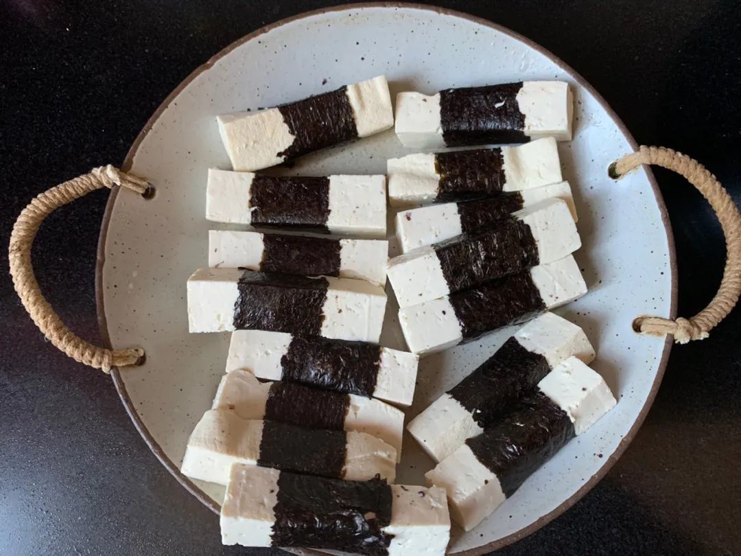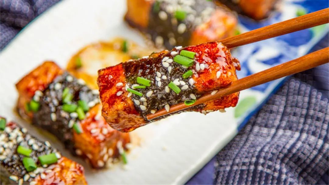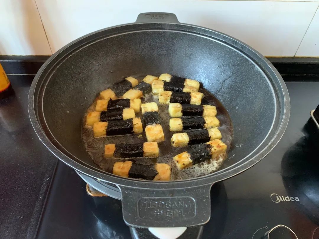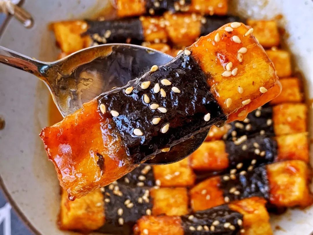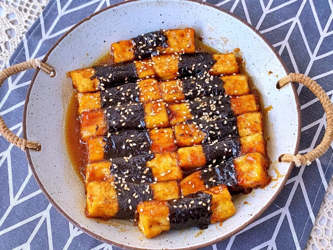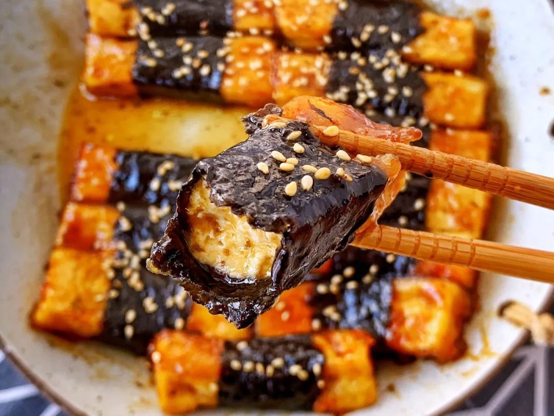 豆腐煎到焦脆的外壳,包裹着咸中带甜的照烧汁,加上海苔的鲜甜,无敌美味,好看又好吃!