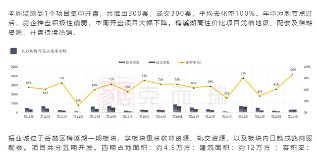 据悉,7月份开盘入市的楼盘中,振业城再次实现了开盘即售完,而旭辉铂悦湘江也取得了去化超九成的好成绩。
