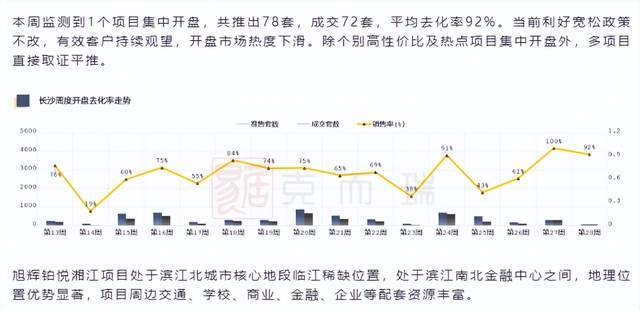 旭辉铂悦湘江于7月12日加推15#栋共计78套房源,均为改善型大平层产品,平均去化率约92%。