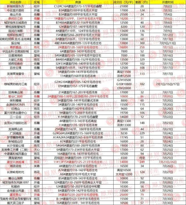 据凤凰网房产不完全统计,7月长沙六区一县共计44盘推新,供应超4000套房源。与上个月相比,新房供应量明显减少。