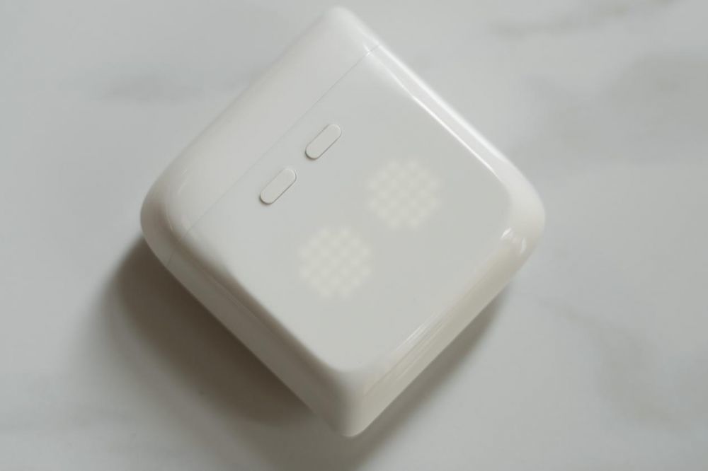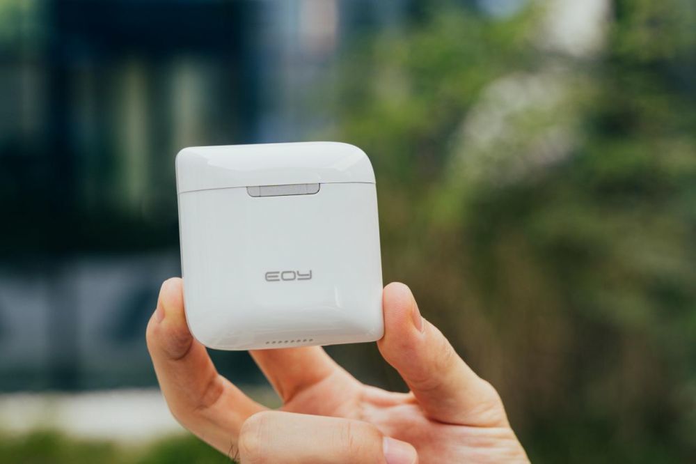 从外观上来看,EOY T20在便携性上,以小巧的耳机盒的形态出现,但是在细节上却又一点点不同,与其说是一款大一号的TWS耳机,更像是一个便携的掌心AI音箱。