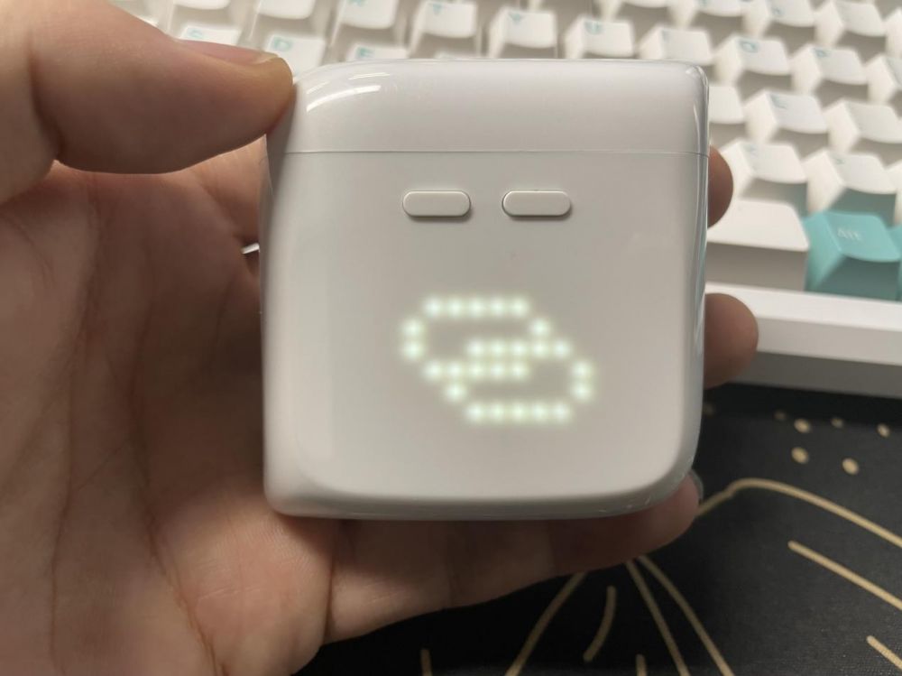开机后,机身还有一个12*12的点阵LED呼吸灯屏幕,在不同的场景下,会显示不同的图标提示。