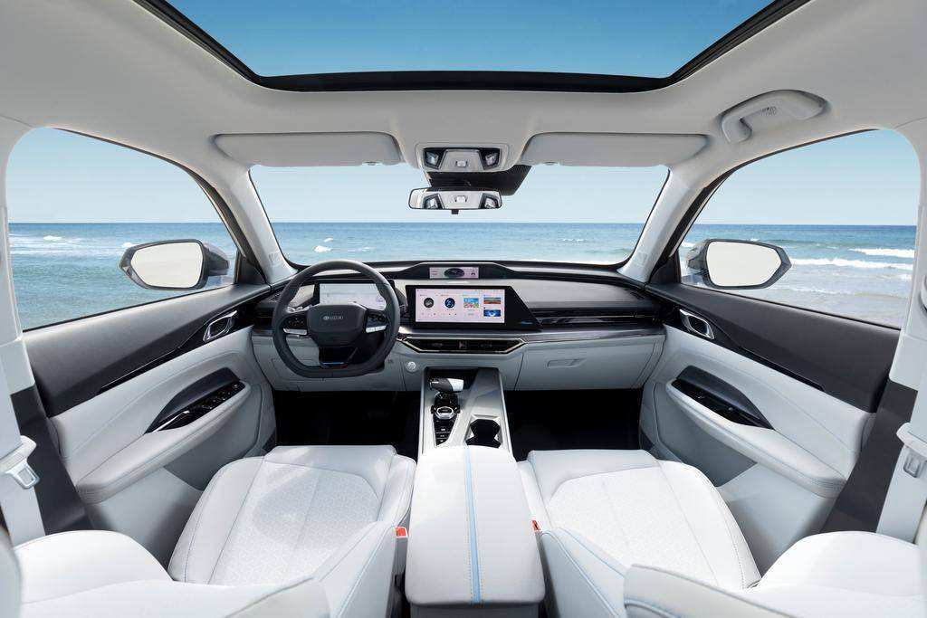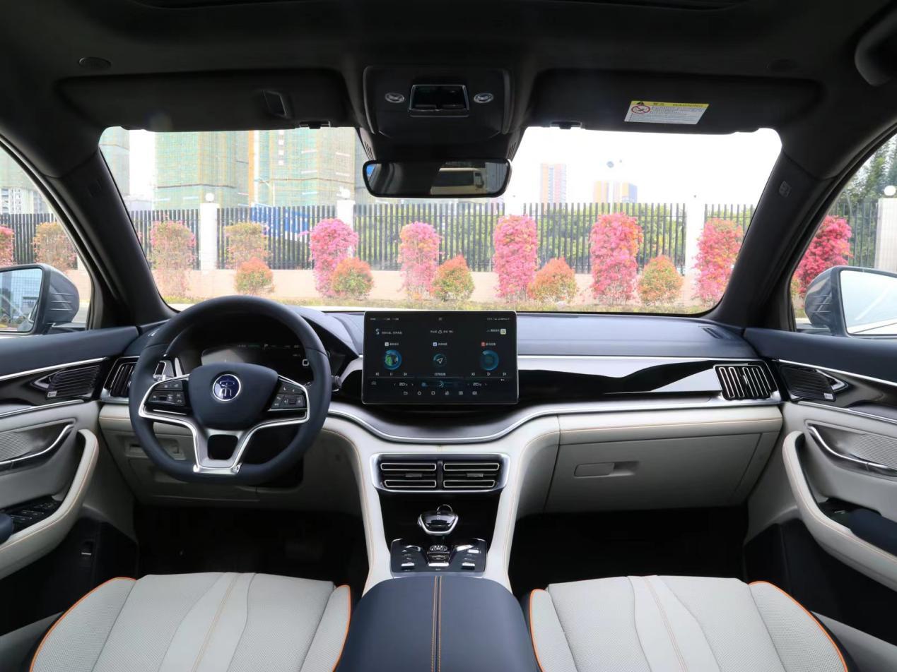 内饰方面是比亚迪常见的设计,中控台采用对称式设计,比较舒展。入门级车型配备了19英寸轮毂、全LED自动大灯、可开启的全景天窗、360全景影像、透明底盘、带记忆的电动尾门、无匙进入、一键启动、蓝牙/NFC钥匙、主驾位电动调节、全车仿皮座椅、12.8英寸旋转大屏、支持4G网络的DiLink、前排隔音玻璃、双温区自动空调、后排空调出风口等,做到了入门即高配。