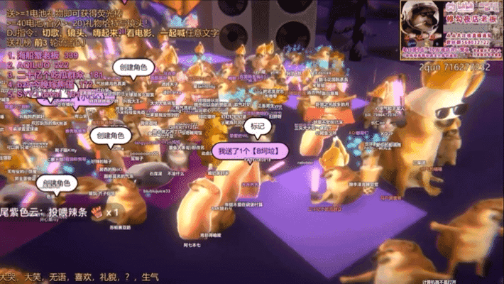 除了蹦迪狂舞外,还可以在直播间打赏送礼物,金额大于40元就可以给自己的Cheems来个特写镜头。进入打赏榜前5名就能成为当日的DJ“lucky dog”(幸运狗狗),能够切歌、切换镜头、号召大家一起“put your hands up”,还能放电影。