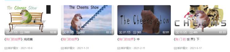 在Cheems视频的常驻地B站,相关视频多达上千个。而当我们谈论关于Cheems的优质二创视频时,几乎都绕不开《狗门的世界》。
